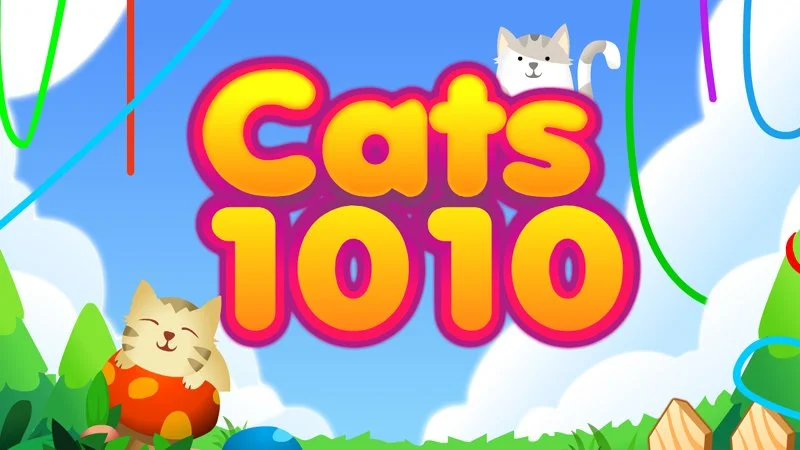 1010 game with cats. Drag and rotate shapes and reach the indicated goal.